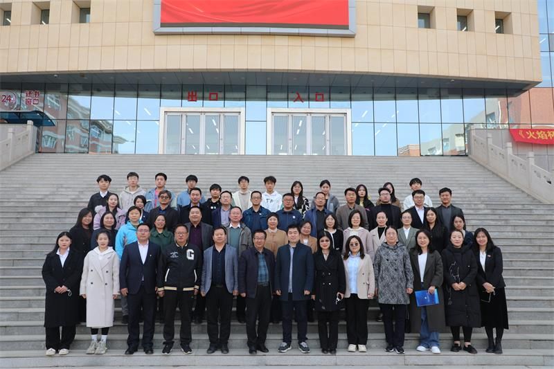 活动结束后,出席活动的领导、嘉宾及获奖师生在图书馆前合影留念。