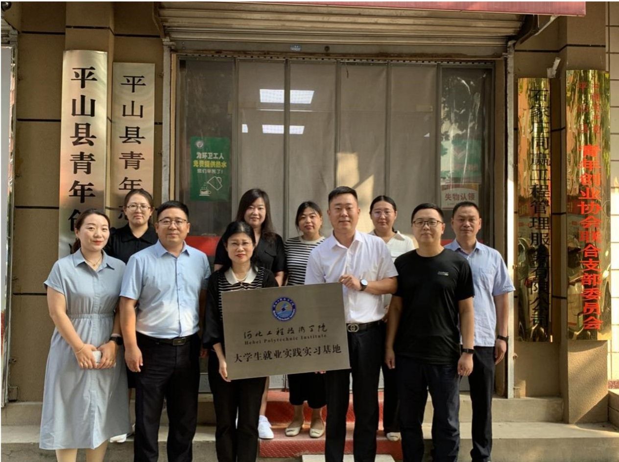 学子求学出家乡,学成归来促家乡。为了使同学们增加就业实践实习机会,提高就业竞争能力,2023年9月14日软件公司经理赵冬梅、党总支书记学管副经理王亚杰、教学副经理张波、办公室主任孙香宁、人才招聘办公室主任郑曼、辅导员张跃也走进河北省石家庄市平山县青年创业协会,与共青团平山县委书记韩强、共青团平山县委副书记郄晓兴、平山县青年创业协会会长付立新、平山县青年志愿者协会会长茹志才进行调研座谈并举行老员工就业实习基地合作挂牌仪式。