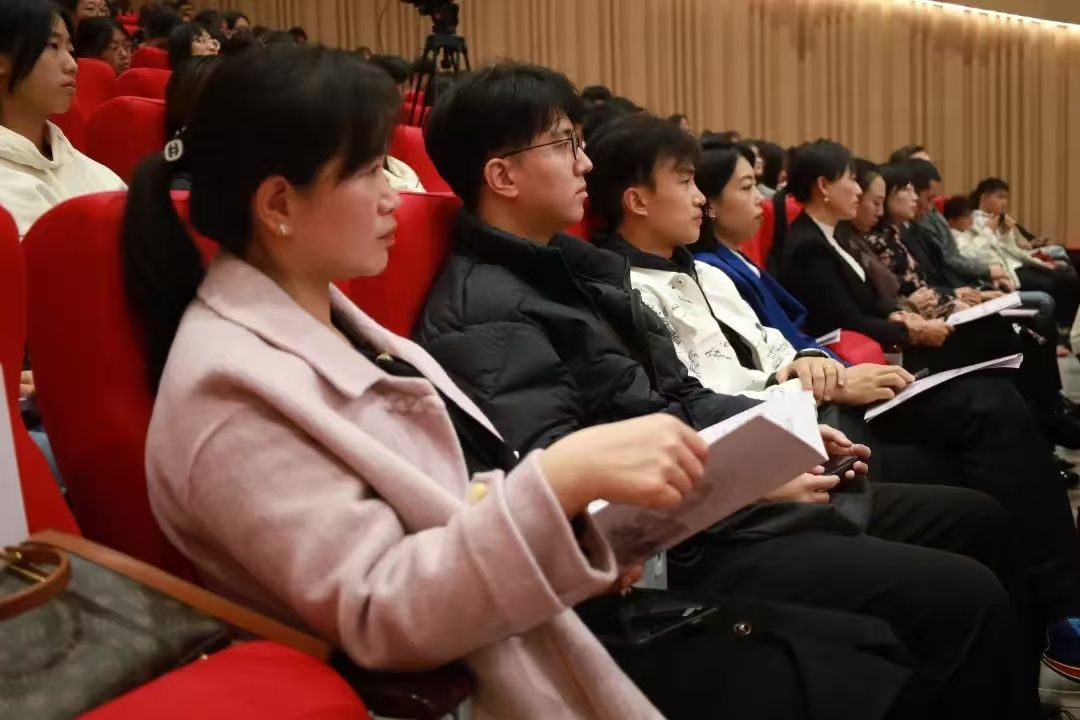 接下来,由国家级非物质文化遗产井陉拉花的传承者、拉花健身秧歌创始人张晓丹先生做《深度揭秘井陉拉花艺术之美》专题讲座。他深入浅出地阐述了井陉拉花的历史渊源,细致入微地剖析了其独特的艺术特色,并详细介绍了拉花的传承与创新。通过一系列生动的案例,张晓丹先生引领师生们走进井陉拉花的世界,让大家对这一传统艺术形式有了更加直观且深刻的认识。