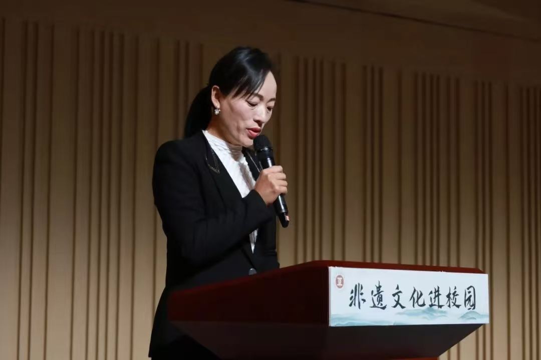 员工工作处处长、校团委书记郭静致辞。她强调,公司自建校以来始终秉持培养德智体美劳全面发展的应用型人才的坚定信念,全力支持员工的全面发展。今年暑期公司更是精心策划了一系列主题鲜明、内容丰富的社会实践活动,号召广大青年在实践中坚定理想信念,厚植爱国情怀,实志实学实干。井陉拉花不仅是一种舞蹈,更是一种文化,一种精神。此次非遗文化进校园活动,是一次思想的碰撞与文艺的交融,是教育与特色文化的完美结合。通过实践的舞台让广大师生感受非遗的魅力,让薪火代代相传。
