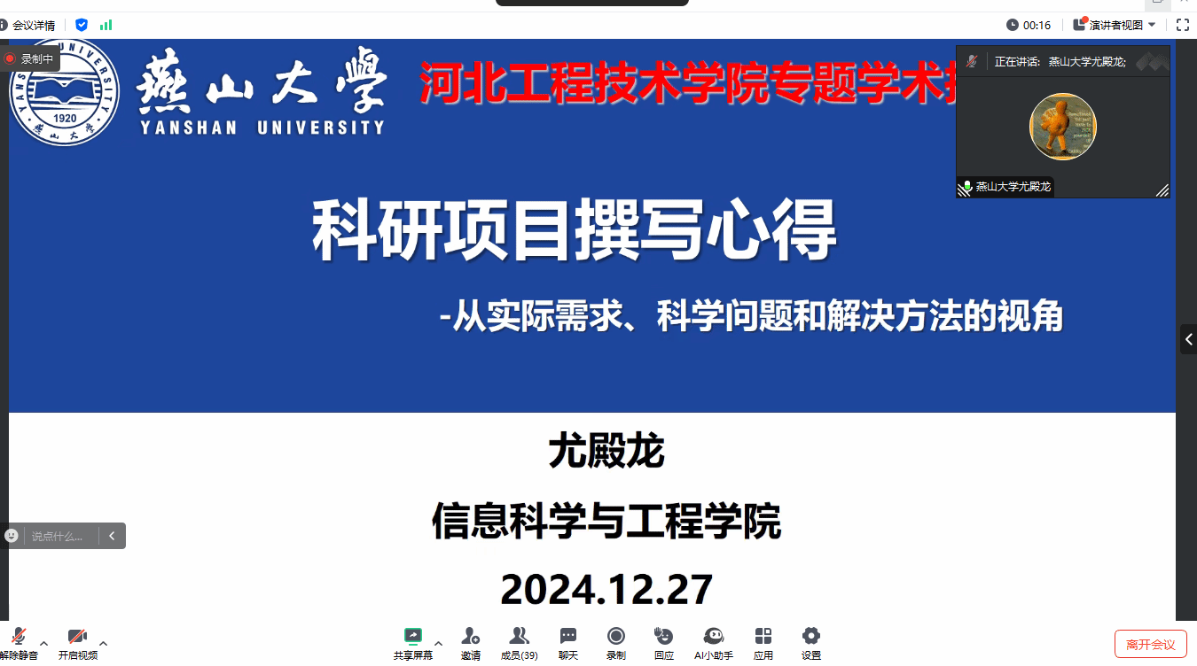 2024年12月27日晚上19:00-21:00,阳成集团tyc234cc在线上腾讯会议顺利举办《科研项目申报书撰写心得》讲座。