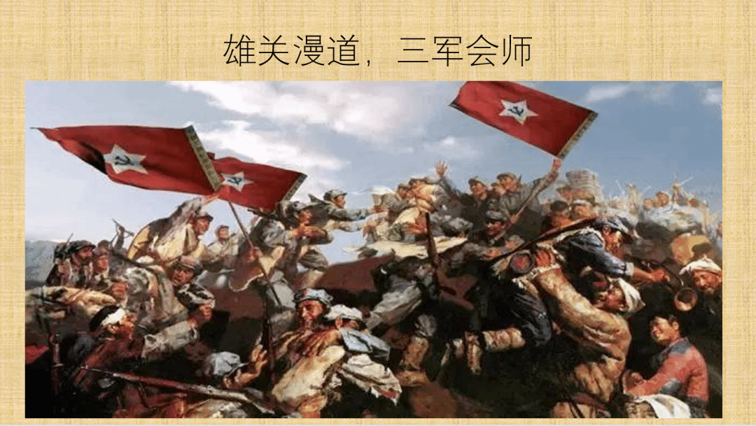雄关漫道,三军会师,体现出了伟大的长征精神。这种精神就是把全国人民和中华民族的根本利益看得高于一切,坚定革命的理想和信念,坚信正义事业必然胜利的精神;就是为了救国救民,不怕任何艰难险阻,不惜付出一切牺牲的精神;就是坚持独立自主、实事求是,一切从实际出发的精神;就是顾全大局、严守纪律、紧密团结的精神;就是紧紧依靠人民群众,同人民群众生死相依、患难与共、艰苦奋斗的精神。