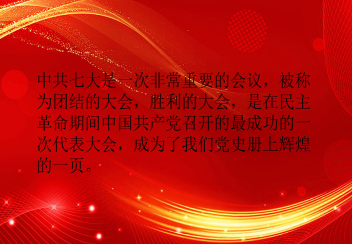 中共七大是中国共产党在新民主主义革命时期极其重要的一次、也是最后一次代表大会。毛泽东思想是马克思列宁主义在中国的运用和发展,是被实践证明了的关于中国革命的正确的理论原则和经验总结,是中国共产党集体智慧的结晶。为使同学们深刻了解这一为党领导人民去争取抗日战争的胜利和新民主主义革命在全国的胜利,奠定了政治上、思想上和组织上的深厚基础的重大会议,特进行四史教育第三十四讲——汇聚七大 确立指针。