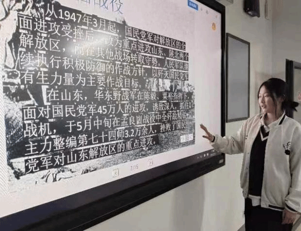 2022级软件工程三班的刘永辉向同学们详细介绍了这一系列战役的过程:全面内战爆发之后,毛泽东从延安的枣园搬到了中央军委的所在地——王家坪,在这里指挥着全国的自卫战争。全面内战刚爆发时,面对国民党军队绝对优势的兵力和火力,毛泽东提出的战略战术是强调集中优势兵力,各个歼灭敌人,以消灭敌人有生力量为主,不以保守城市和地方为主。全面内战爆发半年之后,国民党军队攻占了解放军区105座城市,但是,它却有70个旅的兵力被歼灭,机动兵力越打越少,全面进攻变得困难。因此,1947年春天,国民党军队就改为重点进攻,集中进攻陕北和山东。1947年元旦,蒋介石向师以上的部队,发布了一个第70号密令,提出在一年之内彻底消灭万恶之奸匪,却没想到发布命令不久,自己在山东遭到了最大的一次歼灭。