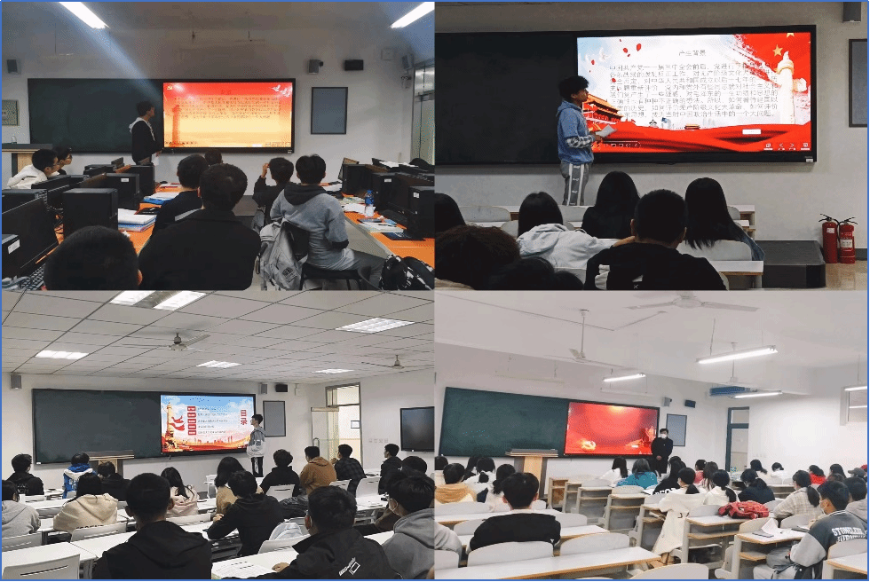 软件工程6班李阳同学和电子商务2班张佳启同学详细介绍了“关于建国以来若干问题的决议”的起草工作。其起草工作从1979年11月开始,在中央政治局、书记处领导下,由邓小平、胡耀邦主持进行的。经长时间讨论和修改,集中全党智慧形成。电子商务1班刘硕同学从“关于建国以来若干问题的决议”的历史背景入手,详细介绍了“中国共产党第十一届中央委员会第三节全体会议”。《决议》的起草过程中,从1980年3月到中共十一届六中全会,邓小平多次谈过对决议稿的起草和修改的意见。这些意见成为起草决议的“总的原则,总的指导思想”。