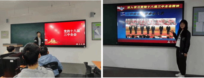 2022级电子商务1班的高文政同学介绍了会议背景。1978年以来的35年,已经进行过7次三中全会,每一次都对国家政治经济生活的重大问题作出了重要部署。按照中共政治惯例,每届中共中央的一中全会往往是紧接在党的代表大会之后召开,主题是“人事”,讨论选举中央最高领导层,比如选举政治局常委,通过中央书记处成员,决定中央军事委员会组成人员等。而二中全会,则是在全国两会换届前召开,主要讨论的是新一届国家机构的人事问题。而到了三中全会,每届中共中央即国家机构的人事问题已经安排妥当,可以全力投入国家的发展和改革问题。历届三中全会往往带有每届中央领导集体的烙印,往往可以通过观察三中全会的举措,来发现本届中央领导集体的施政特点。