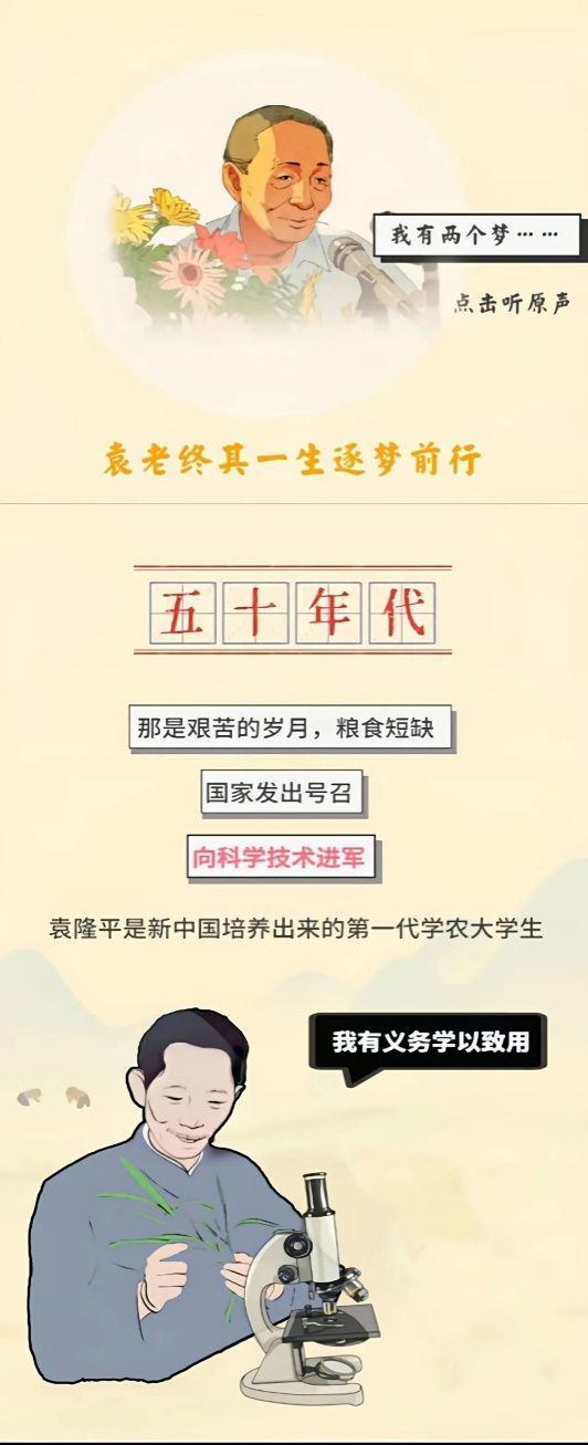 晚年的袁隆平患上了慢阻肺,多走两步路都会喘气。即便如此,他仍打起精神,对外展现出最好的状态。91岁的他在去医院的路上,乐观地唱起了《歌唱祖国》:“歌唱我们亲爱的祖国,从今走向繁荣富强……”