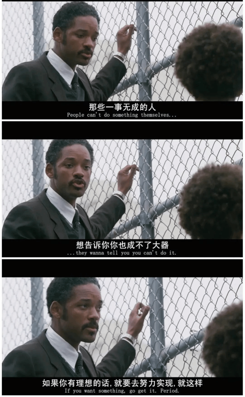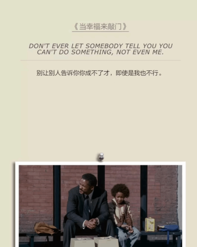 “别让别人告诉你,你成不了才,即使是我也不行”这是电影《当幸福来敲门》中父亲对儿子说的一句话。