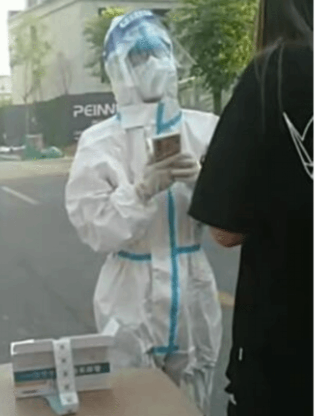 在疫情防控形势严峻的情况下,刚返乡的王啸天同学主动请缨担任起信息登记员,统计社区采集核酸信息,有序维持核酸检测秩序。每次到采集核酸的时间,他都会耐心提醒社区居民做核酸,并协助社区医护工作者为居民采集核酸。这是他第一次穿上防护服,成为一名“新手信息登记大白”,尽管穿着密不透风的防护服,汗流浃背,他依旧保持着耐心,为每一位前来的群众提供帮助。面对腿脚不好的老人,他主动上门帮助其采集核酸。