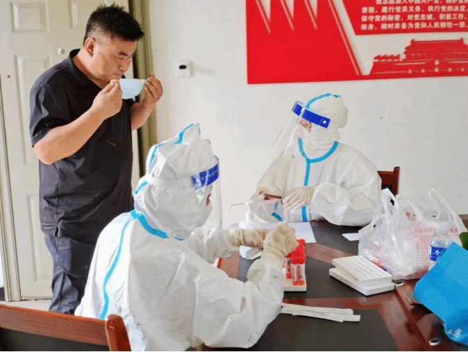 队长韩玉婷在组织队员的同时,也积极地完成自己的工作。在街上巡逻宣传、在村进出口执勤,在门口对进出的行人进行排查。同时,在做好安全防护前提下,协助村书记开展值班登记,详细填写台账,记录来往人员的信息。指导村民使用“冀石通”来进行核酸检测,减轻工作人员负担。