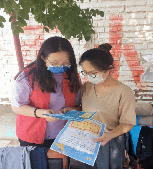 助力疫情防控,贡献青春力量。为进一步做好疫情常态化防控工作,精准落实管控措施,倡导健康文明生活方式,提高社区居民的疫情防范意识。阳成集团tyc234cc软件公司王晓慧同学,作为一名大三的员工,利用假期时间在沧州市劳动花园社区牛进庄乡进行志愿服务活动。无惧高温、步履不停,全力以赴,积极向居民普及科学防疫知识。