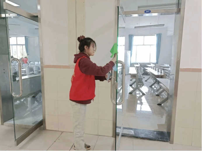 活动期间负责人对参与人员进行指导,确保卫生清洁无死角。打扫完毕后,他们分别对每间教室进行了仔细检查,确保无误后拍照上传。最后,集合进行总结,本次活动圆满成功。