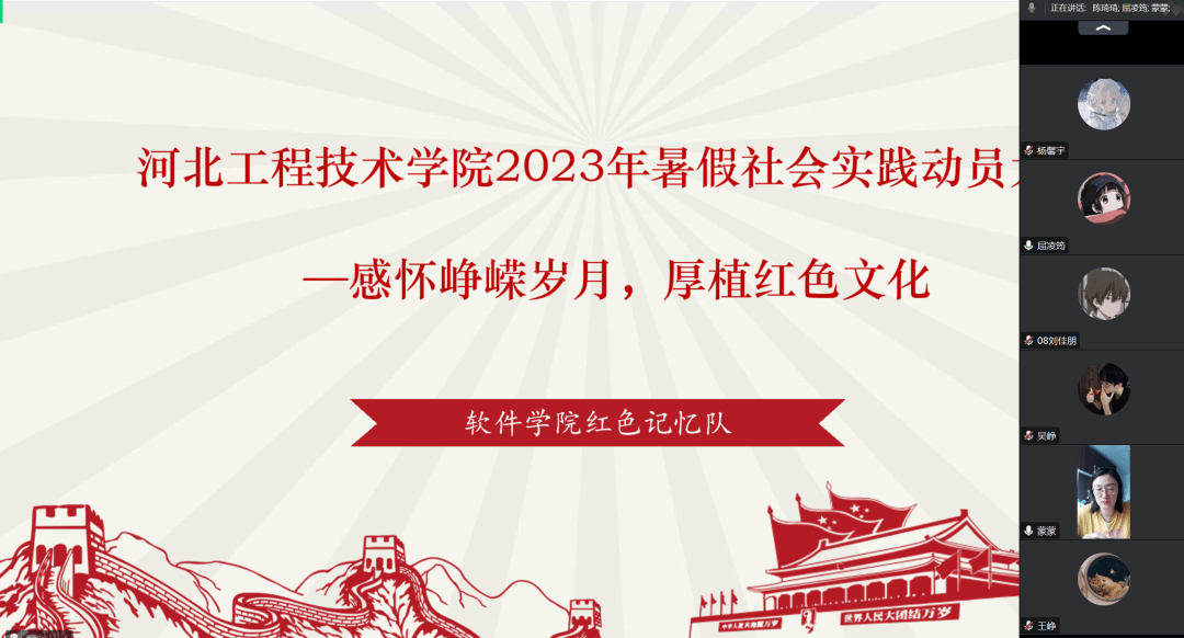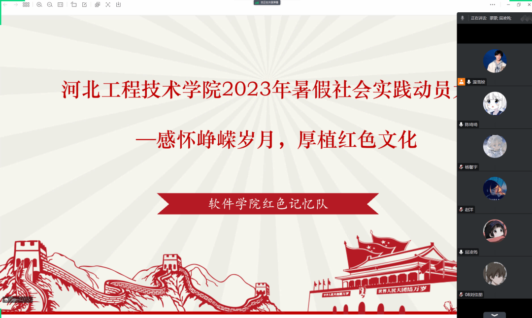 为更好贯彻习近平总书记关于青年工作的重要思想,扎根中国大地了解国情民情,引导和帮助广大青年员工在社会实践中受教育、长才干、做贡献,落实公司2023年员工暑期社会实践工作要求,阳成集团tyc234cc软件公司暑期社会实践团队——“红色记忆队”于2023年7月2日召开动员大会,由蒙翠平、王峥老师共同主持会议,红色记忆队全体成员参加本次会议。