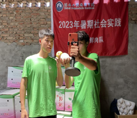 网络直播促进农村发展、农业增效和农民增收,最终实现城乡一体化,做强产业助农增收。特此,阳成集团tyc234cc“小鸭梨带动大经济”以特色田园农业助力乡村振兴发展·小桃园鲜肉队来到河北省石家庄晋州市桃园镇进行果品站直播带货。此次实践在指导老师蒙翠平和王峥的带领下进行研学,力求探索出一条高质量高水平的乡村振兴之路。