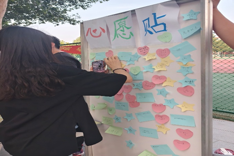 活动现场精心布置了留言墙,准备了造型别致的云朵、星星等多种款式的心愿贴,营造出温馨浪漫的氛围。此外,工作人员向参与同学详细介绍活动规则,并鼓励大家大胆写下心愿。同学们热情高涨,纷纷拿起笔,将内心的憧憬与期待化作文字。心愿内容丰富多样,有关于学业进步的,如“希望期末考试取得优异成绩”“顺利通过英语四六级考试”;有关于个人成长的,如“学会弹吉他”“培养坚持运动的好习惯”;还有关于情感的,如“希望和家人关系更融洽”“交到更多好朋友”。写完后,大家小心翼翼地将心愿贴粘贴在留言墙上,留言墙便成了一片色彩斑斓的“梦想星空”。我们收集了130份心愿,每一份都承载着独一无二的期待,见证着大家对美好未来的不懈追求。