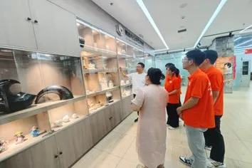 展厅里,师生共创的玉石雕作品莹润含光,陶瓷器皿古朴沉淀。队员们在杨老师指导下执刀实践,从手忙脚乱到渐入佳境,当简单造型在指尖成型,他们真切体会到“如切如磋,如琢如磨”的专注——这种在快节奏时代愈发珍贵的工匠精神,正是实践的重要收获。