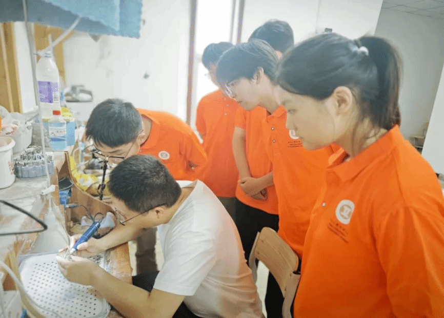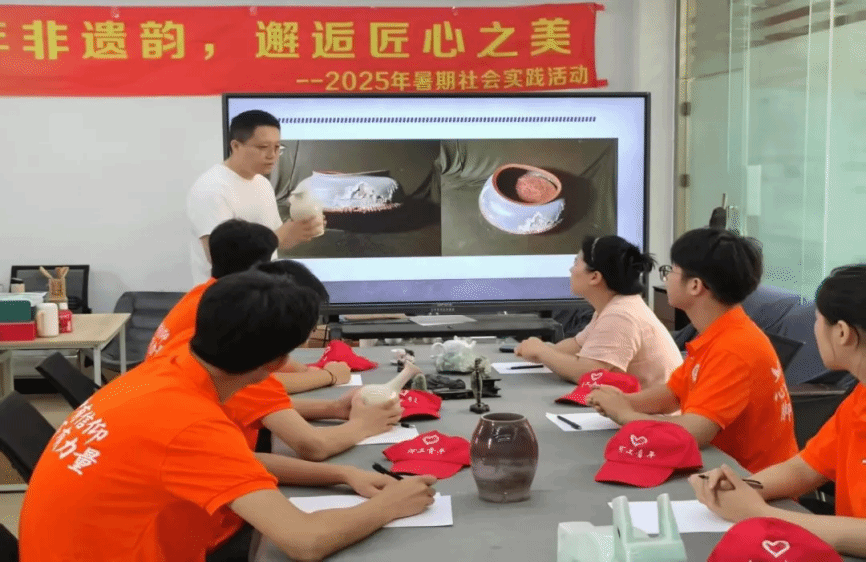 河北美术公司雕塑与公共艺术公司杨光昭老师的课堂,为队员们打开了非遗世界的大门。这位深耕传统工艺数十年的老师,以玉雕与陶瓷技艺为脉络,既讲解玉石切割的角度拿捏、釉料配比的火候掌控等实操细节,更阐释“巧色”技法中天人合一的哲学、陶瓷开片里残缺即圆满的美学。在他的解读中,非遗不再是博物馆里的标本,而是活着的文化基因,承载着古人对世界的理解。