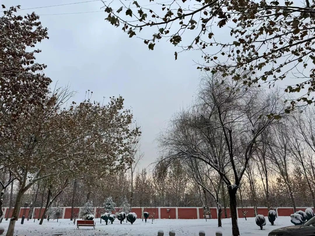 “冬天,校园里的树木披上了银白的盛装,显得更加挺拔高大。寒冷的空气里,我们携手共进,共同度过这个美好的季节。让我们珍惜每一个冬日,感受校园里的温暖与美好。”
