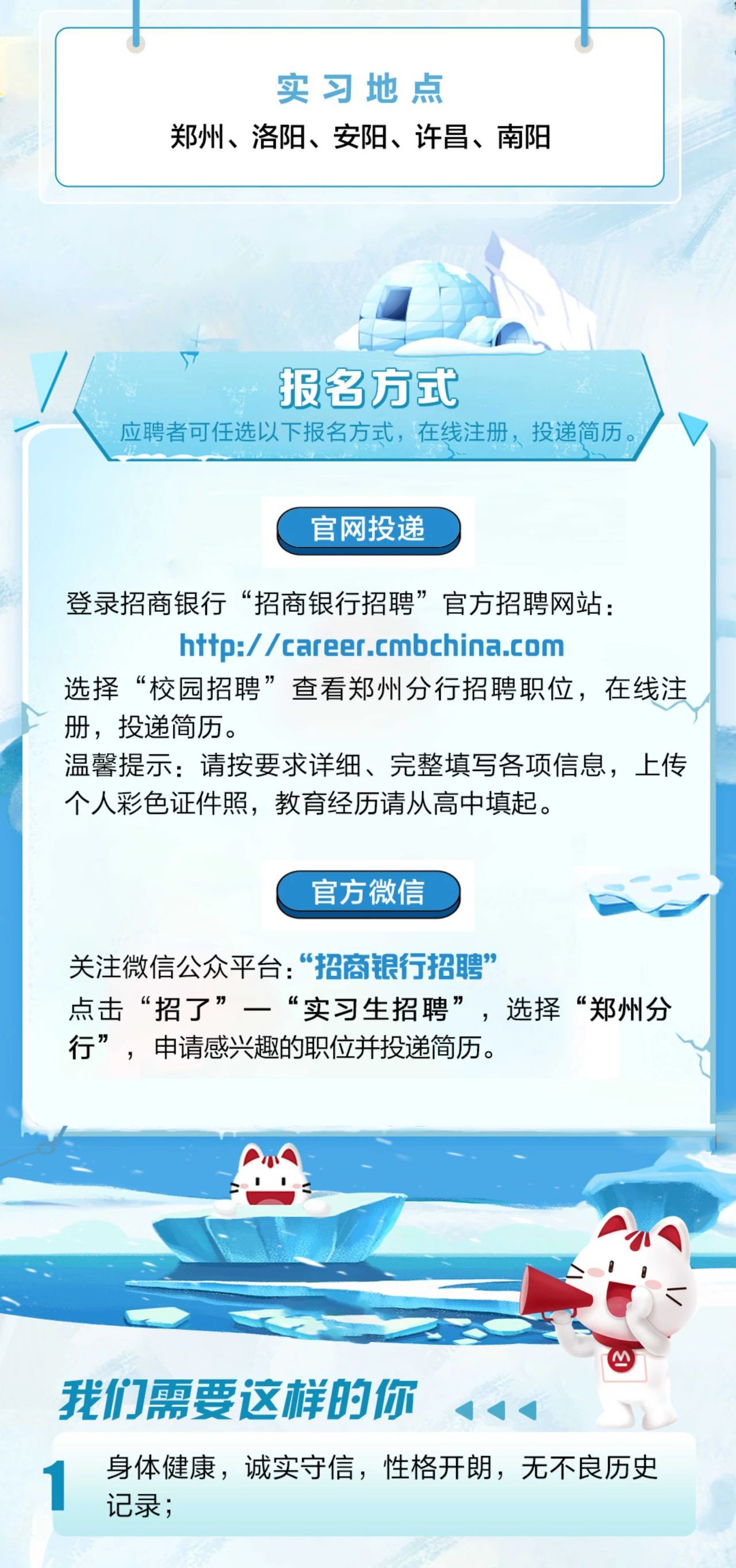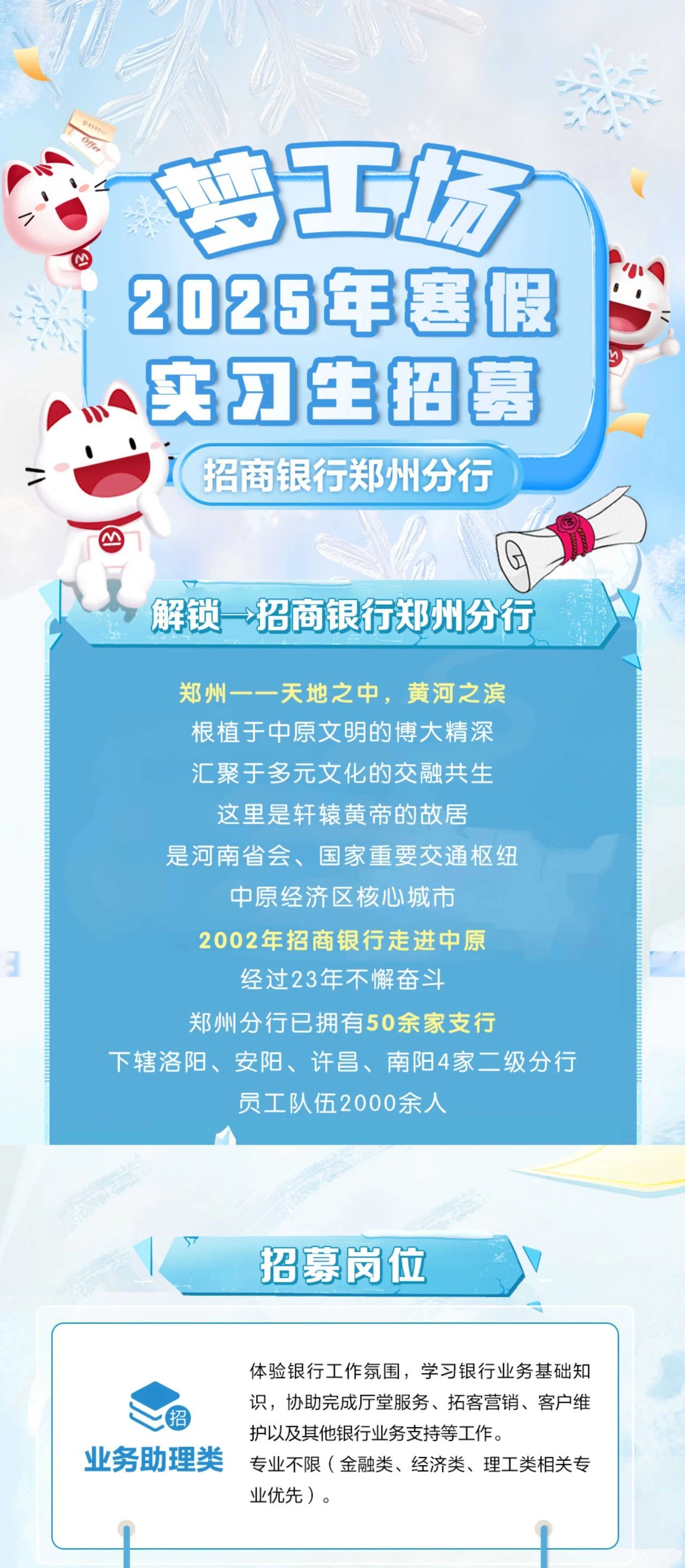 招商银行郑州分行2025年寒假实习生招聘