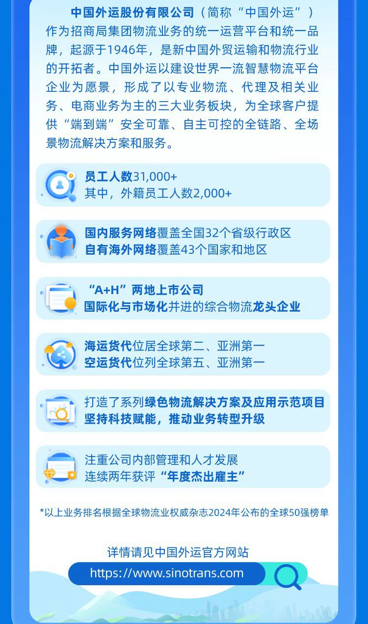 「招聘公告」 中国外运股份有限公司2025届春季校园招聘