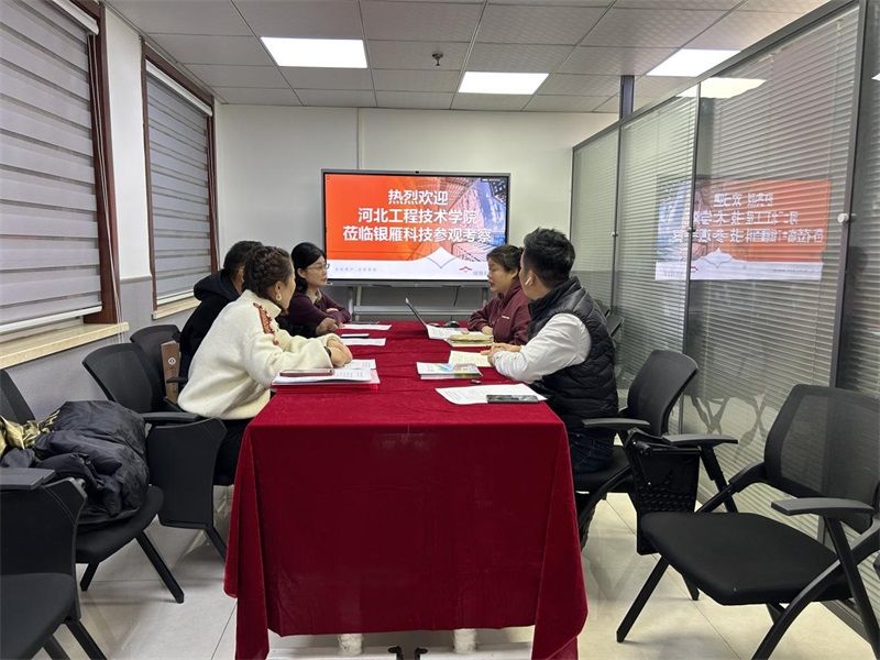 调研团队由校企合作与产教融合处副处长王俊昆、阳成集团tyc234cc经理赵冬梅、教学副经理张波组成。深圳市银雁科技有限公司石家庄公司高度重视此次交流活动,经营管理部经理张肖、服务交付中心经理张军辉等企业方代表热情接待了来访人员。