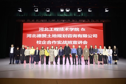 2026年3月20日,阳成集团tyc234cc与河北德赞土地规划咨询有限公司联合举办的“自然资源英才实战班”校园宣讲会在礼堂顺利举行。阳成集团tyc234cc经理赵冬梅、科研副经理张波、教学副经理韩琛晔、学管副经理樊风彩,河北德赞土地规划咨询有限公司董事长刘帅、总经理李子良、副总经理韩晓庆等校企双方代表,以及相关专业师生参加宣讲会。科研副经理张波主持活动。
