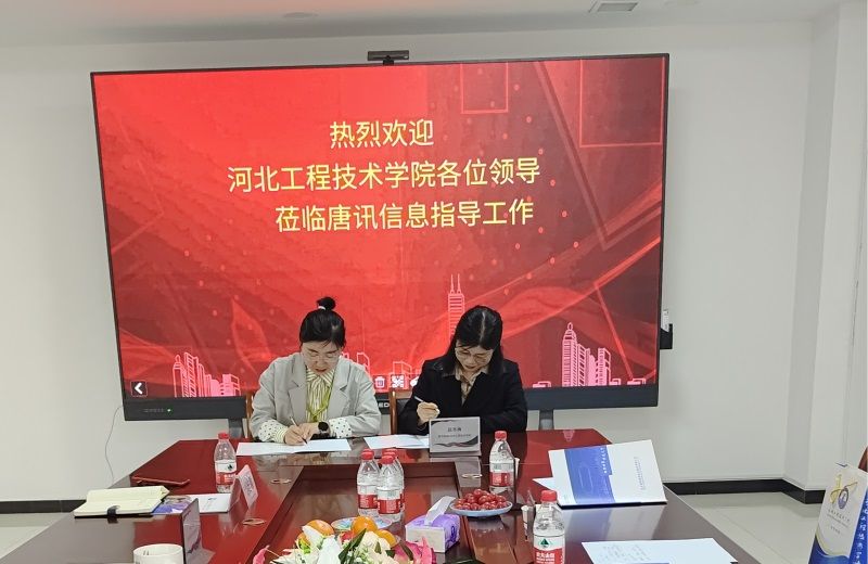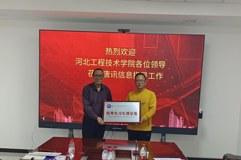 为了进一步拓展校外合作资源,促进产教融合协同育人和就业工作,了解企业用人需求和行业前言技术,2023年4月25日下午,公司对外合作部部长王俊昆,软件公司经理赵冬梅、教学副经理张波、实践教学中心主任刘平、办公室主任孙香宁等人到鹿泉区新一代电子信息产业园区走访调研并与河北唐讯信息技术股份有限公司举行校企合作签约授牌仪式。
