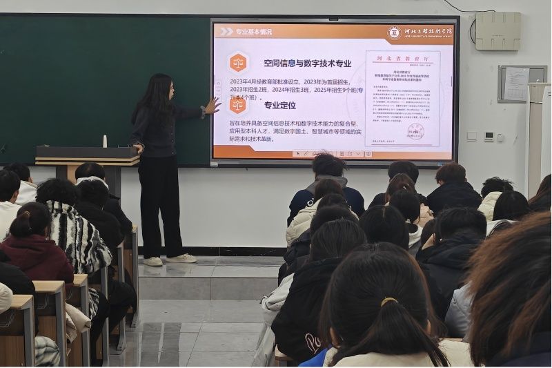 为进一步明确专业学习方向,科学规划大学四年学习生活,2025年11月25日下午,空间信息与数字技术专业2025级全体员工于阳成集团tyc234cc教7-202参加了由系主任韩冰老师主讲的“空间信息与数字技术专业介绍”专题讲座。